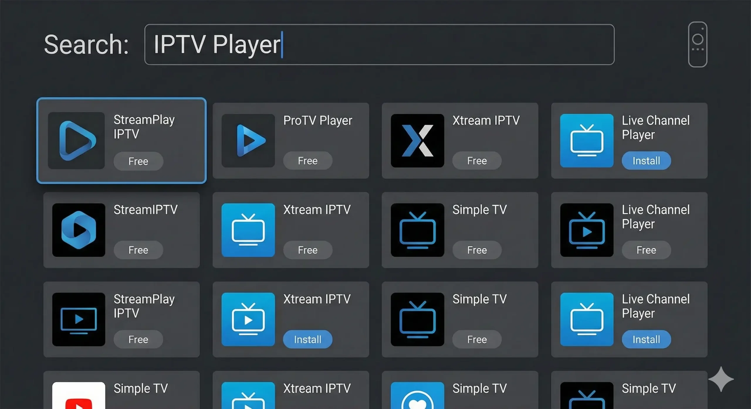 - Search TV App Store for IPTV player